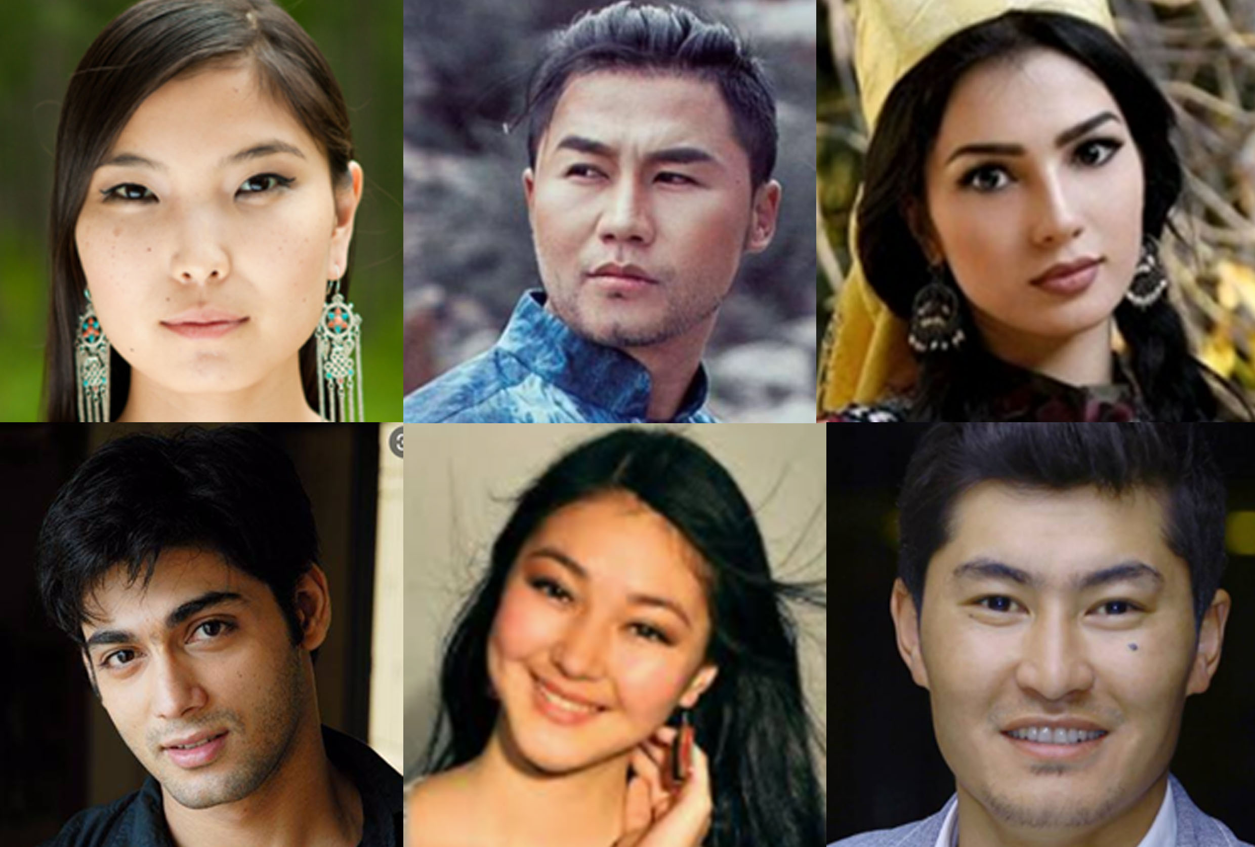 • мужчин и женщин (30-40 лет) с тёмным цветом волос, кыргызской или казахской национальности и евразийской (метисы) внешности.